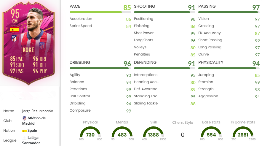 In case you're searching for a close wonderful focal midfielder to secure your Ultimate Team in FUT 21, there won't be numerous preferable choices over FUTTIES Winner Koke. On top of his 95 OVR rating which is based upon five 90+ property scores and an 85 in Pace as his most fragile choice, Koke is rankling with high evaluations. This FUTTIES adaptation of Koke has an ideal 99 rating in Reactions, Ball Control, Composure, Shot Power, Short Passing, and Stamina. What's more, he has a 98 in Positioning, and 97s in Vision, Crossing, Long Passing, and Curve that root a field of details with nothing under an 80.