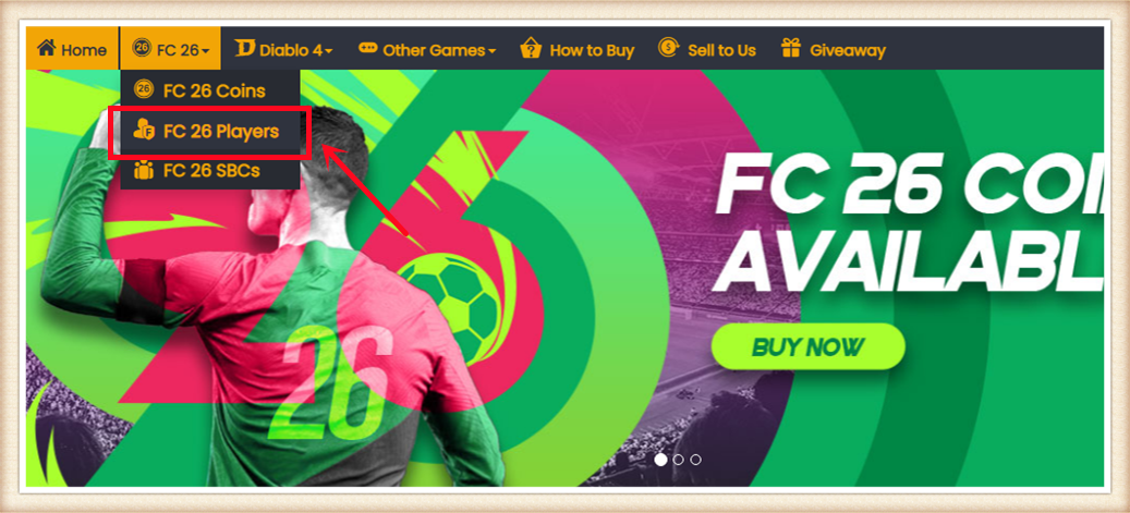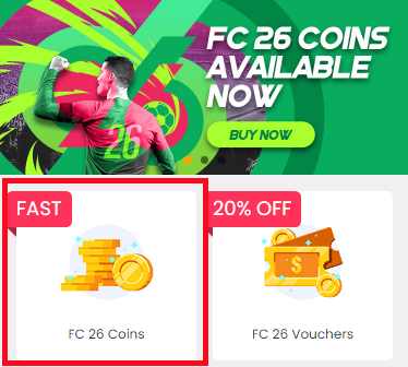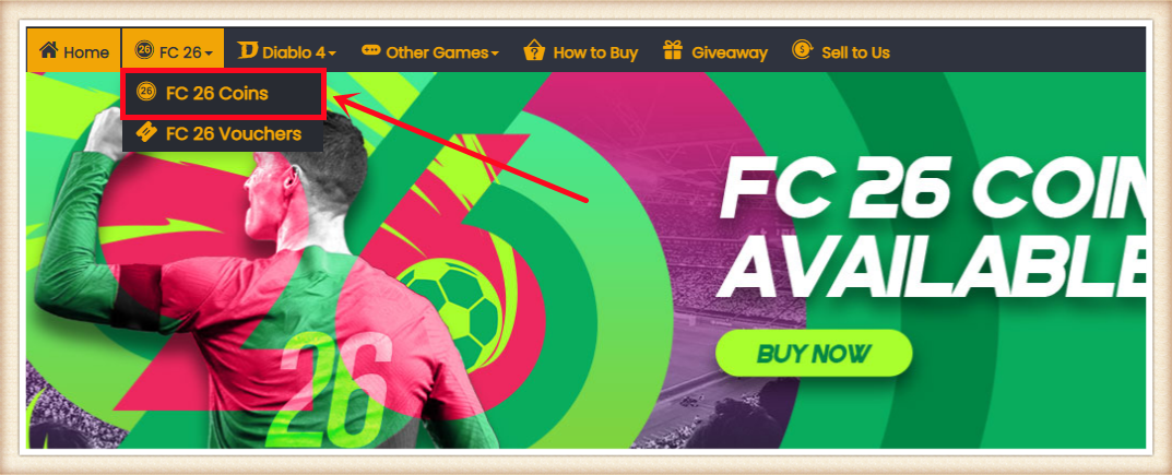 1. Please log in to your member account before placing an order, choose "FC 26" and click "FC 26 Coins".