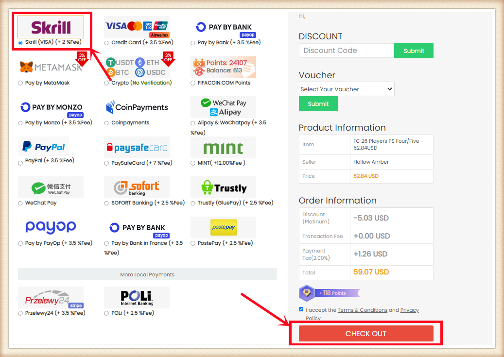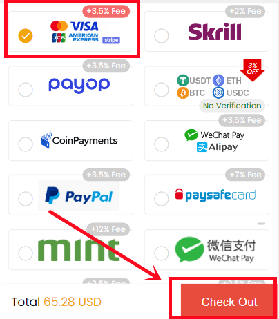 4. Choose the payment method, and CHECK OUT.