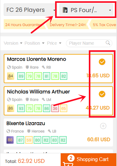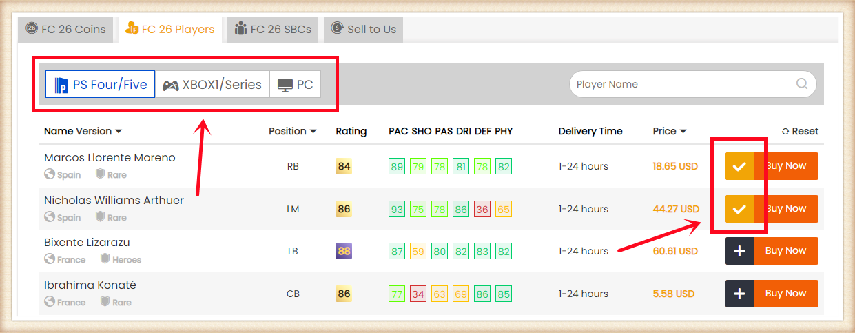 2. Choose your console and the players you want to buy.