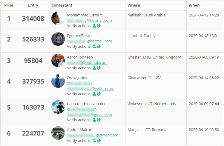 Congratulations! 6 winners have been randomly chosen by the third party Gleam. The higher the participation, the greater the chance of being selected! Check the prizes as follow now,