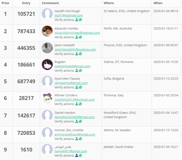 The 9 winners are randomly chosen by the third party gleam.io according to their entries as long as the event ends.