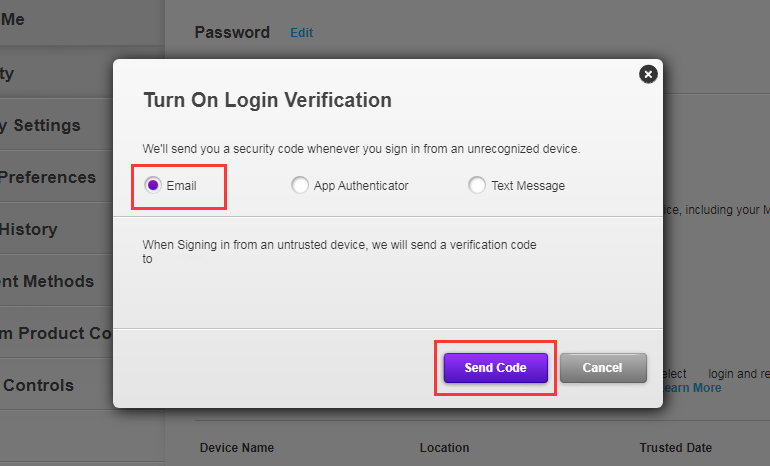 4. Scegli "Email", quindi fai clic su "Invia codice".