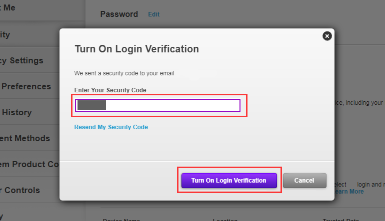 5. Digita il codice di sicurezza che hai ricevuto nella tua casella di posta elettronica, quindi "Attiva la verifica dell'accesso".