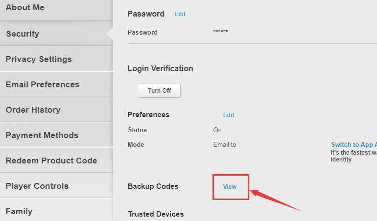 6. Fare clic su "Visualizza" codici di backup.